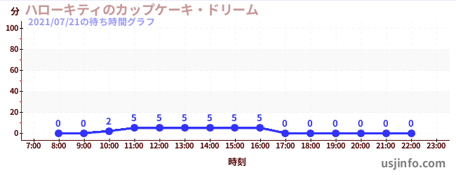 • ハローキティのカップケーキ・ドリーム$B$N(B2021年07月21日の待ち時間