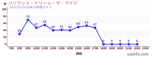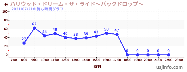 • ハリウッド・ドリーム・ザ・ライド〜バックドロップ〜$B$N(B2021年07月21日の待ち時間
