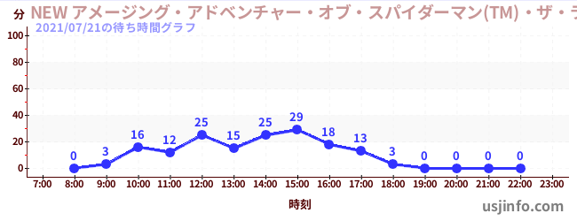 • NEW アメージング・アドベンチャー・オブ・スパイダーマン(TM)・ザ・ライド 4K3D$B$N(B2021年07月21日の待ち時間