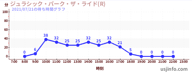• ジュラシック・パーク・ザ・ライド(R)$B$N(B2021年07月21日の待ち時間
