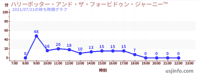 • ハリーポッター・アンド・ザ・フォービドゥン・ジャーニー™$B$N(B2021年07月21日の待ち時間