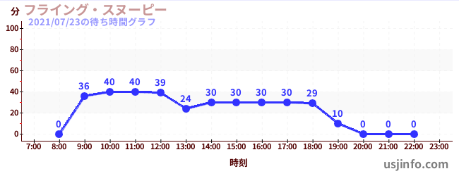 • フライング・スヌーピー$B$N(B2021年07月23日の待ち時間