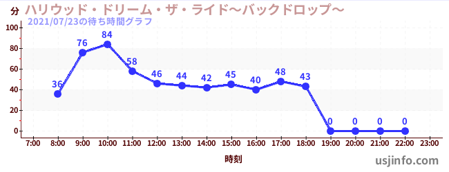 • ハリウッド・ドリーム・ザ・ライド〜バックドロップ〜$B$N(B2021年07月23日の待ち時間