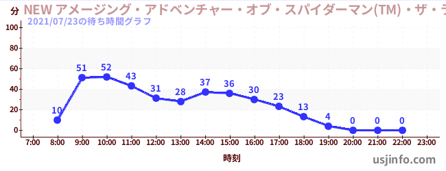 • NEW アメージング・アドベンチャー・オブ・スパイダーマン(TM)・ザ・ライド 4K3D$B$N(B2021年07月23日の待ち時間