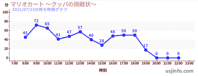 • マリオカート ~クッパの挑戦状~$B$N(B2021年07月23日の待ち時間