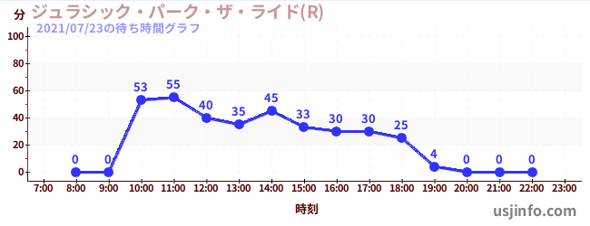 • ジュラシック・パーク・ザ・ライド(R)$B$N(B2021年07月23日の待ち時間