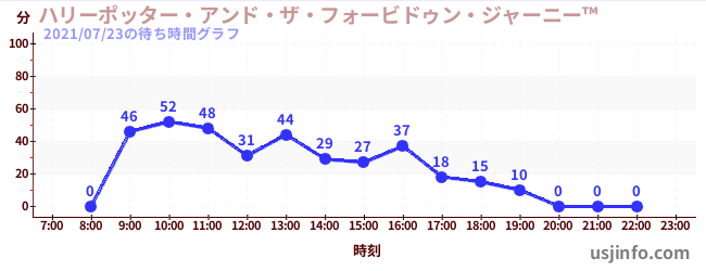 • ハリーポッター・アンド・ザ・フォービドゥン・ジャーニー™$B$N(B2021年07月23日の待ち時間