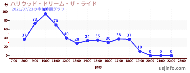 • ハリウッド・ドリーム・ザ・ライド$B$N(B2021年07月23日の待ち時間