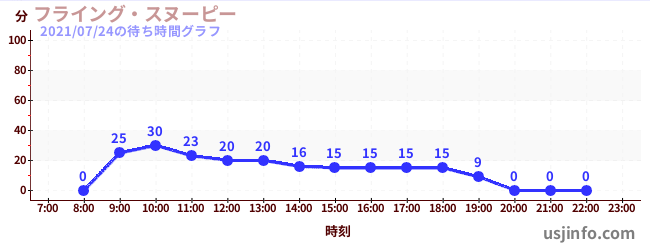 • フライング・スヌーピー$B$N(B2021年07月24日の待ち時間