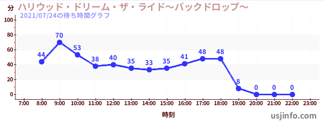 • ハリウッド・ドリーム・ザ・ライド〜バックドロップ〜$B$N(B2021年07月24日の待ち時間