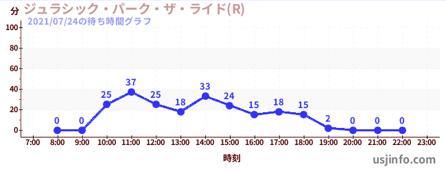 • ジュラシック・パーク・ザ・ライド(R)$B$N(B2021年07月24日の待ち時間
