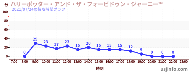 • ハリーポッター・アンド・ザ・フォービドゥン・ジャーニー™$B$N(B2021年07月24日の待ち時間