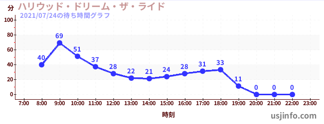 • ハリウッド・ドリーム・ザ・ライド$B$N(B2021年07月24日の待ち時間