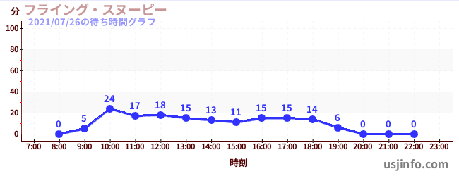 • フライング・スヌーピー$B$N(B2021年07月26日の待ち時間