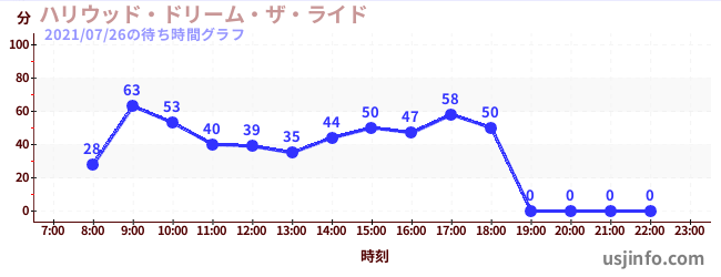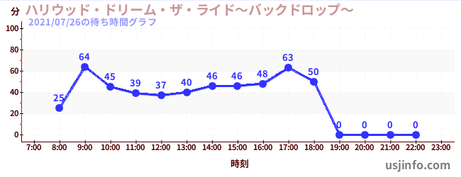 • ハリウッド・ドリーム・ザ・ライド〜バックドロップ〜$B$N(B2021年07月26日の待ち時間