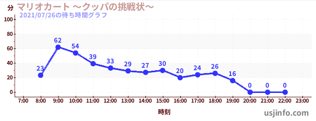 • マリオカート ~クッパの挑戦状~$B$N(B2021年07月26日の待ち時間