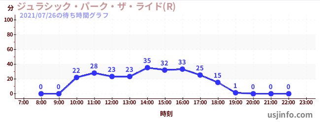 • ジュラシック・パーク・ザ・ライド(R)$B$N(B2021年07月26日の待ち時間