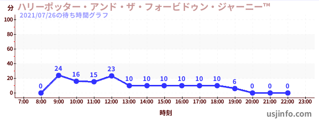• ハリーポッター・アンド・ザ・フォービドゥン・ジャーニー™$B$N(B2021年07月26日の待ち時間