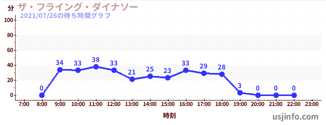 • ザ・フライング・ダイナソー$B$N(B2021年07月26日の待ち時間