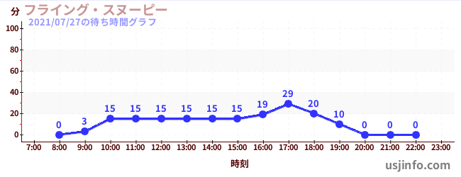 • フライング・スヌーピー$B$N(B2021年07月27日の待ち時間