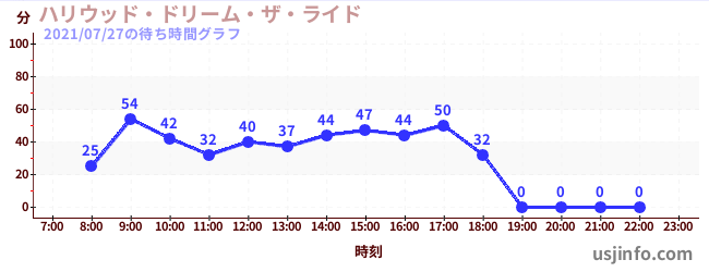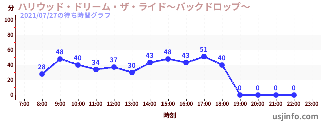 • ハリウッド・ドリーム・ザ・ライド〜バックドロップ〜$B$N(B2021年07月27日の待ち時間