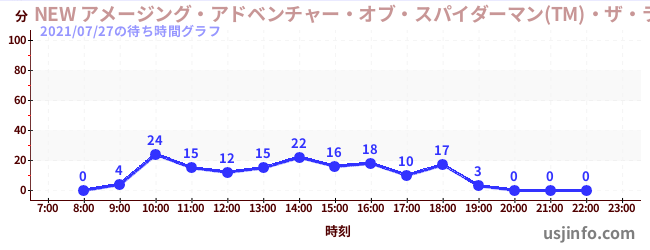 • NEW アメージング・アドベンチャー・オブ・スパイダーマン(TM)・ザ・ライド 4K3D$B$N(B2021年07月27日の待ち時間