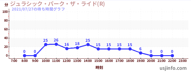 • ジュラシック・パーク・ザ・ライド(R)$B$N(B2021年07月27日の待ち時間