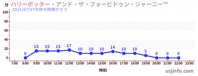 • ハリーポッター・アンド・ザ・フォービドゥン・ジャーニー™$B$N(B2021年07月27日の待ち時間