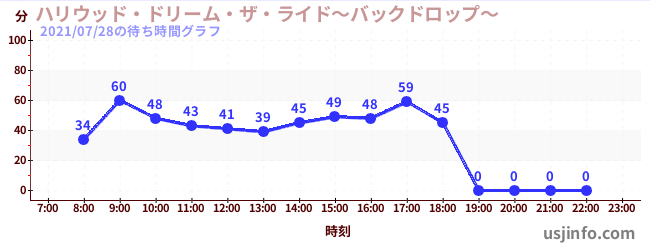 • ハリウッド・ドリーム・ザ・ライド〜バックドロップ〜$B$N(B2021年07月28日の待ち時間