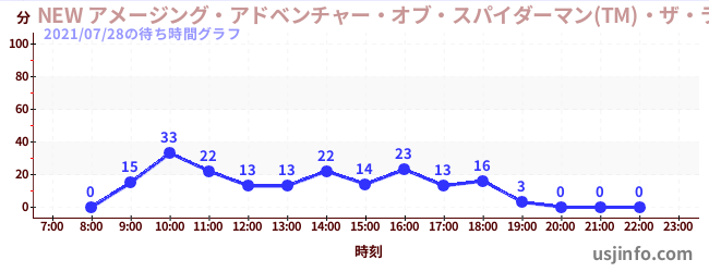 • NEW アメージング・アドベンチャー・オブ・スパイダーマン(TM)・ザ・ライド 4K3D$B$N(B2021年07月28日の待ち時間