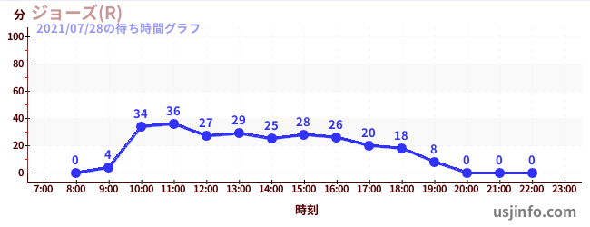 • ジョーズ(R)$B$N(B2021年07月28日の待ち時間