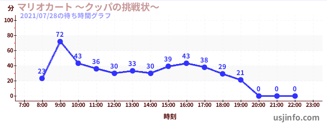 • マリオカート ~クッパの挑戦状~$B$N(B2021年07月28日の待ち時間