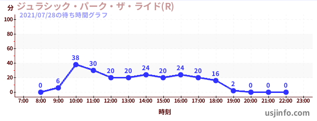 • ジュラシック・パーク・ザ・ライド(R)$B$N(B2021年07月28日の待ち時間