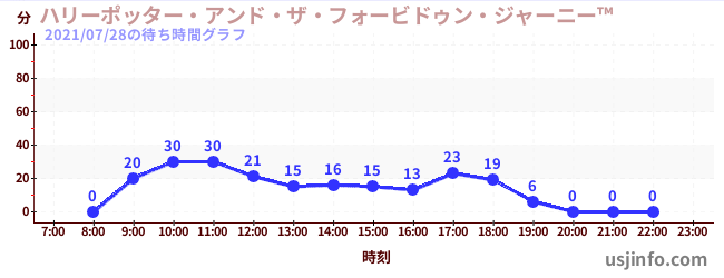 • ハリーポッター・アンド・ザ・フォービドゥン・ジャーニー™$B$N(B2021年07月28日の待ち時間