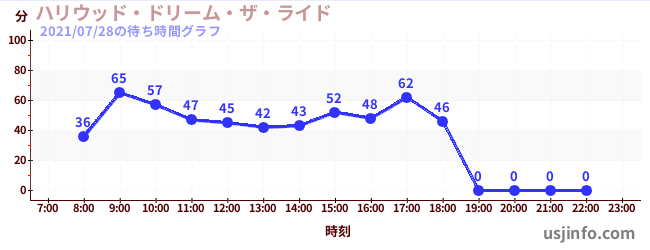 • ハリウッド・ドリーム・ザ・ライド$B$N(B2021年07月28日の待ち時間