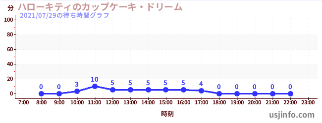 • ハローキティのカップケーキ・ドリーム$B$N(B2021年07月29日の待ち時間