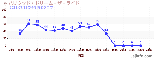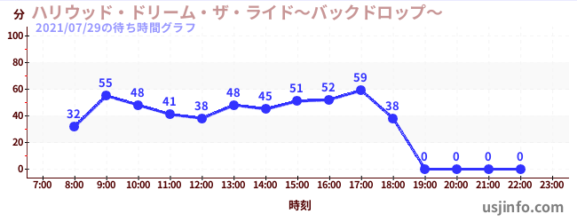 • ハリウッド・ドリーム・ザ・ライド〜バックドロップ〜$B$N(B2021年07月29日の待ち時間
