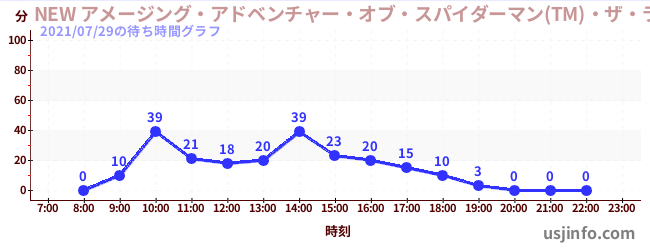 • NEW アメージング・アドベンチャー・オブ・スパイダーマン(TM)・ザ・ライド 4K3D$B$N(B2021年07月29日の待ち時間