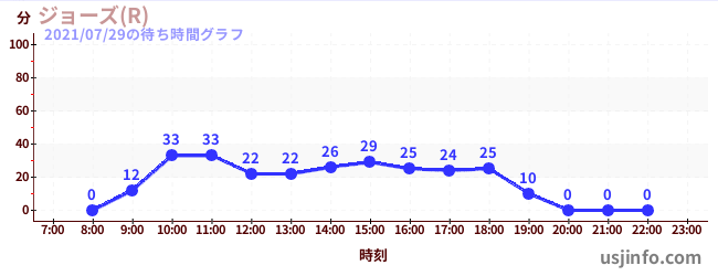 • ジョーズ(R)$B$N(B2021年07月29日の待ち時間