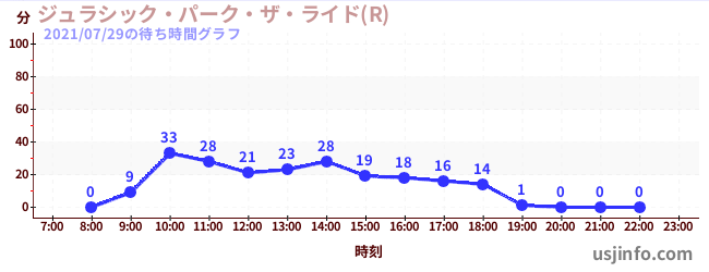 • ジュラシック・パーク・ザ・ライド(R)$B$N(B2021年07月29日の待ち時間