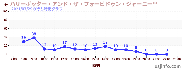 • ハリーポッター・アンド・ザ・フォービドゥン・ジャーニー™$B$N(B2021年07月29日の待ち時間