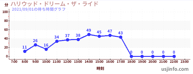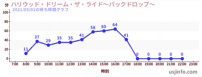 • ハリウッド・ドリーム・ザ・ライド〜バックドロップ〜$B$N(B2021年09月01日の待ち時間