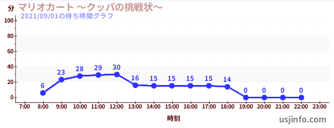 • マリオカート ~クッパの挑戦状~$B$N(B2021年09月01日の待ち時間