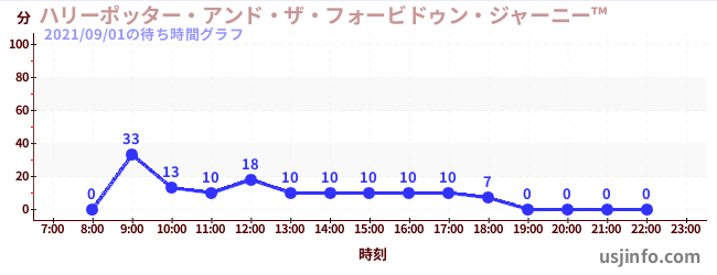 • ハリーポッター・アンド・ザ・フォービドゥン・ジャーニー™$B$N(B2021年09月01日の待ち時間