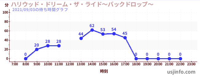 • ハリウッド・ドリーム・ザ・ライド〜バックドロップ〜$B$N(B2021年09月03日の待ち時間