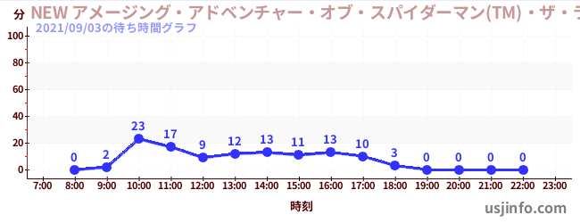• NEW アメージング・アドベンチャー・オブ・スパイダーマン(TM)・ザ・ライド 4K3D$B$N(B2021年09月03日の待ち時間