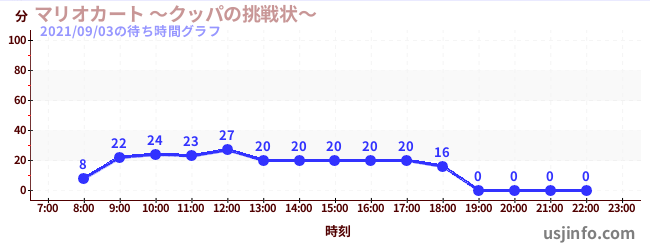 • マリオカート ~クッパの挑戦状~$B$N(B2021年09月03日の待ち時間