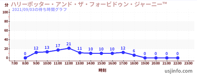 • ハリーポッター・アンド・ザ・フォービドゥン・ジャーニー™$B$N(B2021年09月03日の待ち時間