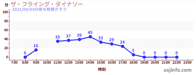 • ザ・フライング・ダイナソー$B$N(B2021年09月03日の待ち時間