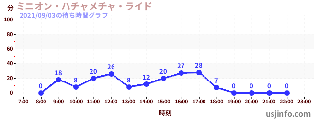 • ミニオン・ハチャメチャ・ライド$B$N(B2021年09月03日の待ち時間